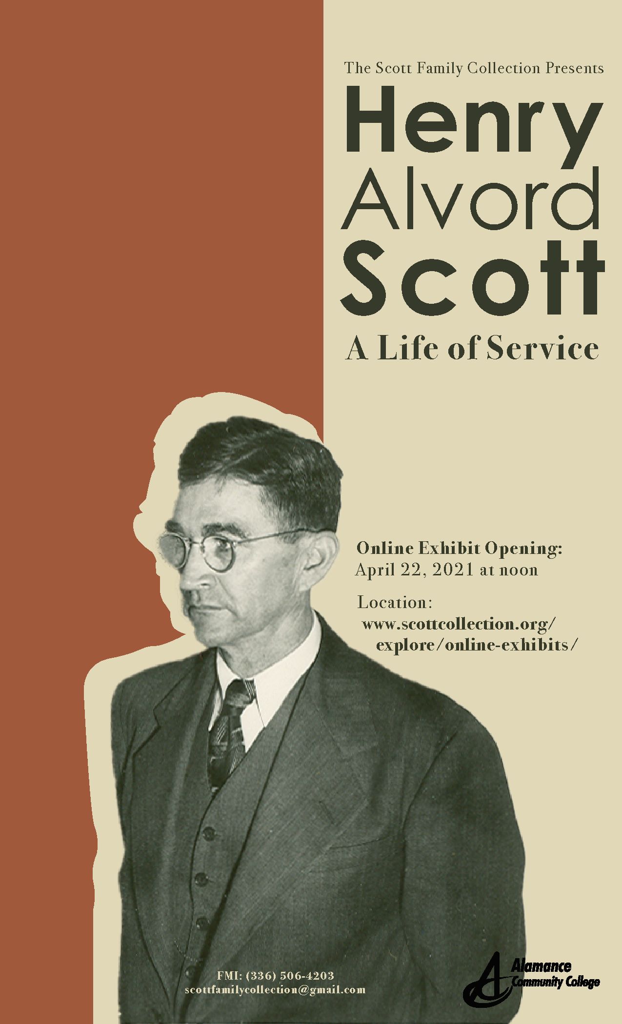 (2021年4月12日)——阿拉曼斯社区学院的斯科特家族收藏将于4月22日(周四)中午12点开始举办vwin德赢网一个新的在线展览,名为“亨利·阿尔沃德·斯科特,服务的一生”。