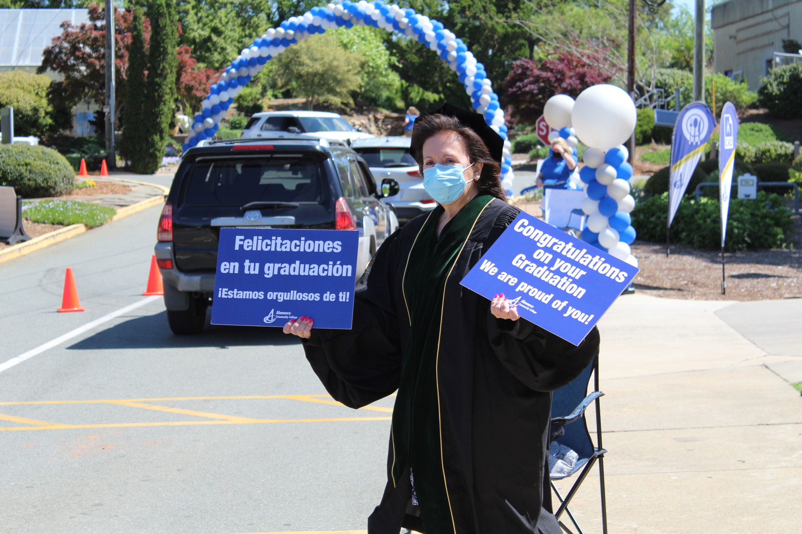 (2021年4月30日) - Alavwin德赢网mance社区学院在4月30日为其2021年毕业生欢呼,为校园驾驶,学生拿起帽子和礼服,收到院子标志和文凭封面,并拍摄了专业的照片。