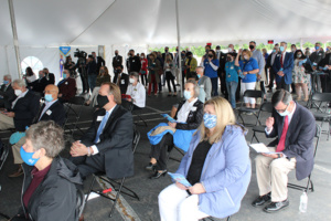 一大群被邀请的政要、民选官员、行业领袖和大学教职人员聆听了一系列的演讲,包括: